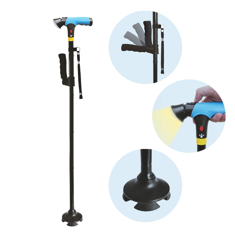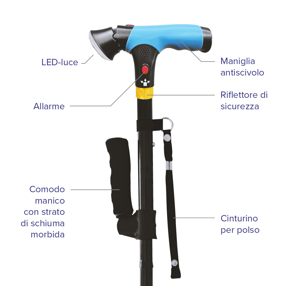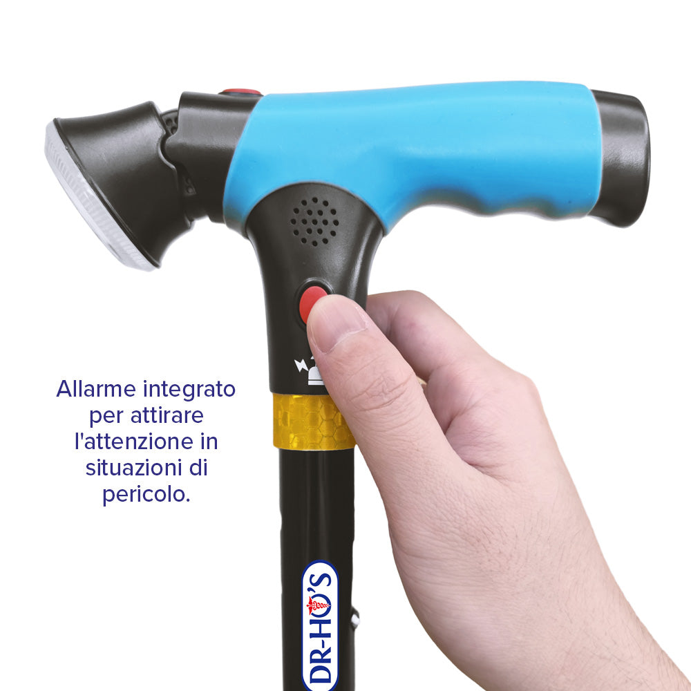 Più di un semplice bastone da passeggio: il DR-HO’S Get Up & Go è progettato per offrire sicurezza e comfort ogni giorno. Grazie alla doppia impugnatura, alla luce LED e alla funzione di allarme, ti supporta in modo affidabile a casa, all’aperto e in viaggio.